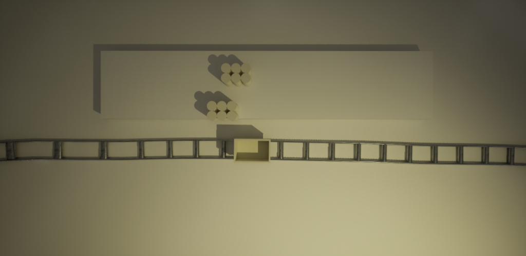 Настройки: Скорость и плавность разгона/торможения тележки, точки/зоны загрузки и выгрузки, количество предметов для спавна.